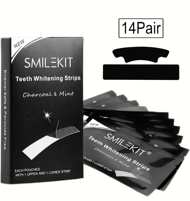 Our innovative whitening strips, designed in sleek black charcoal & mint, deliver outstanding results while fitting seamlessly into your lifestyle.